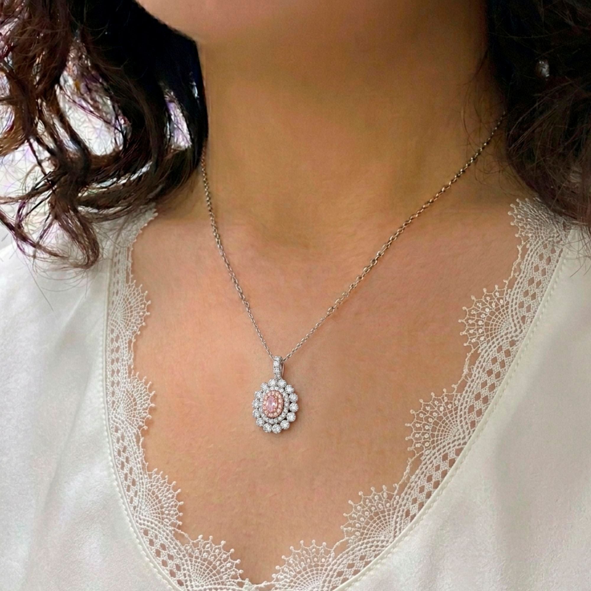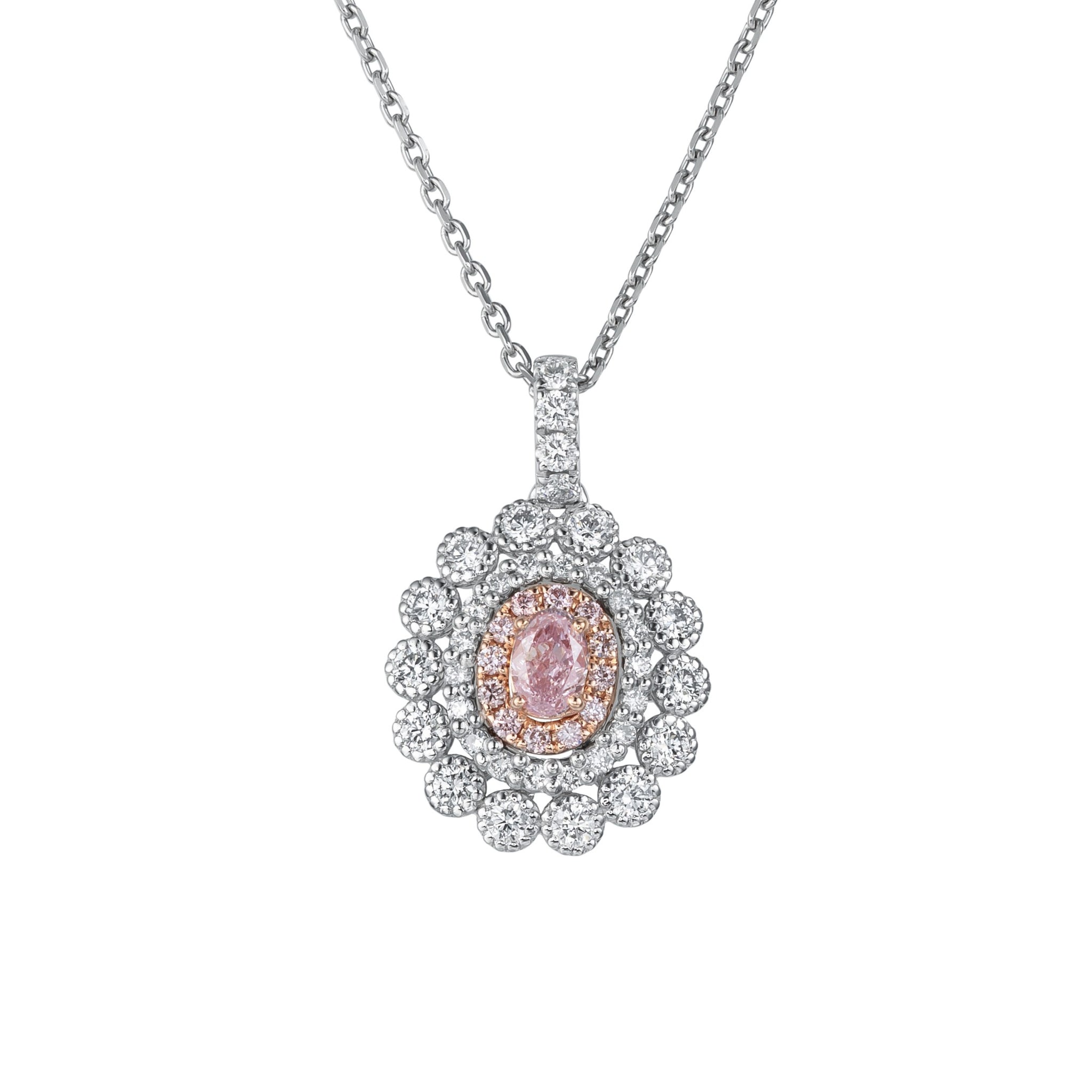 オーバルカットのピンクダイヤが主役の上品なペンダント