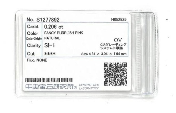 ピンクダイヤモンド:0.206ct / Oval / Fancy Purplish Pink / SI1 / CGLソーティング付